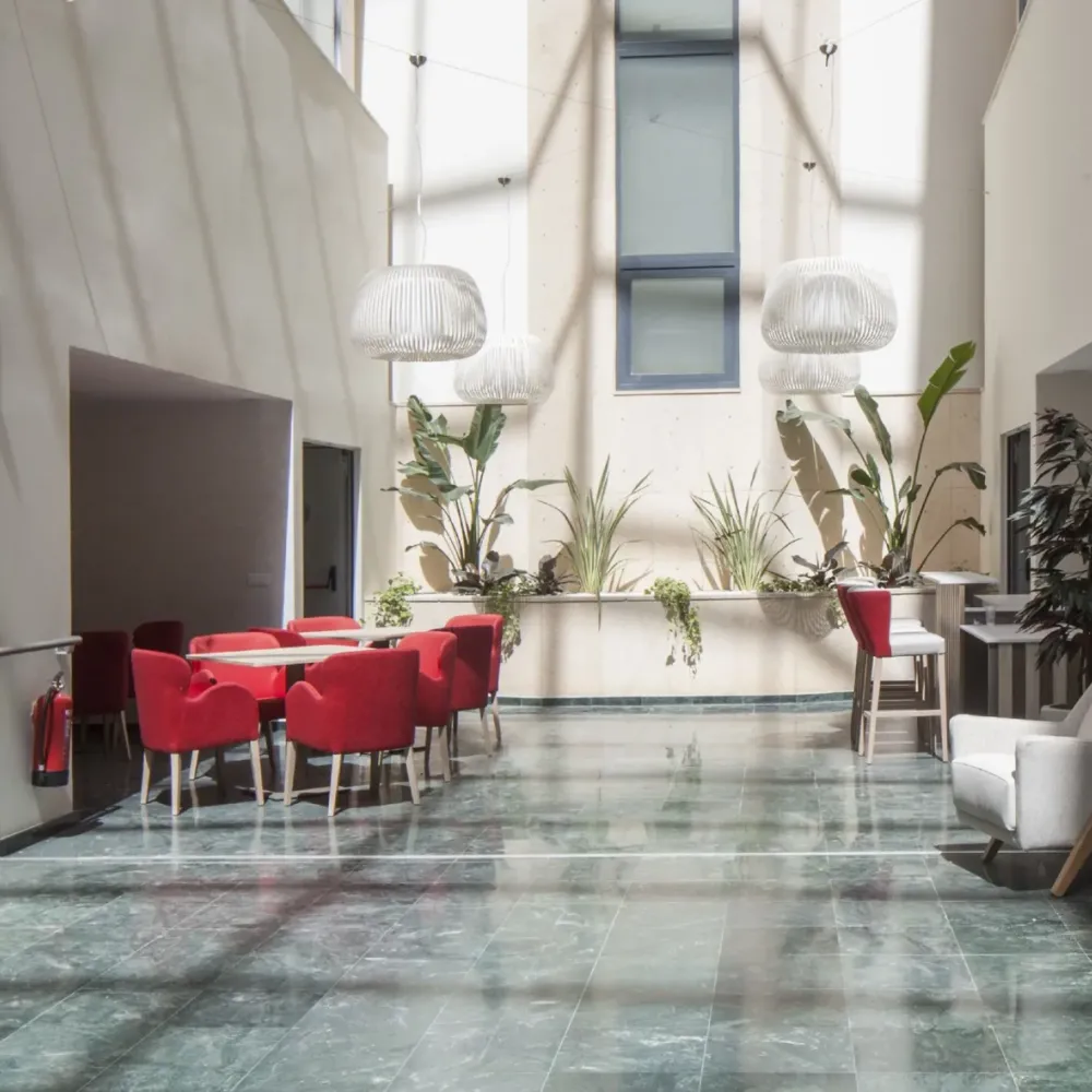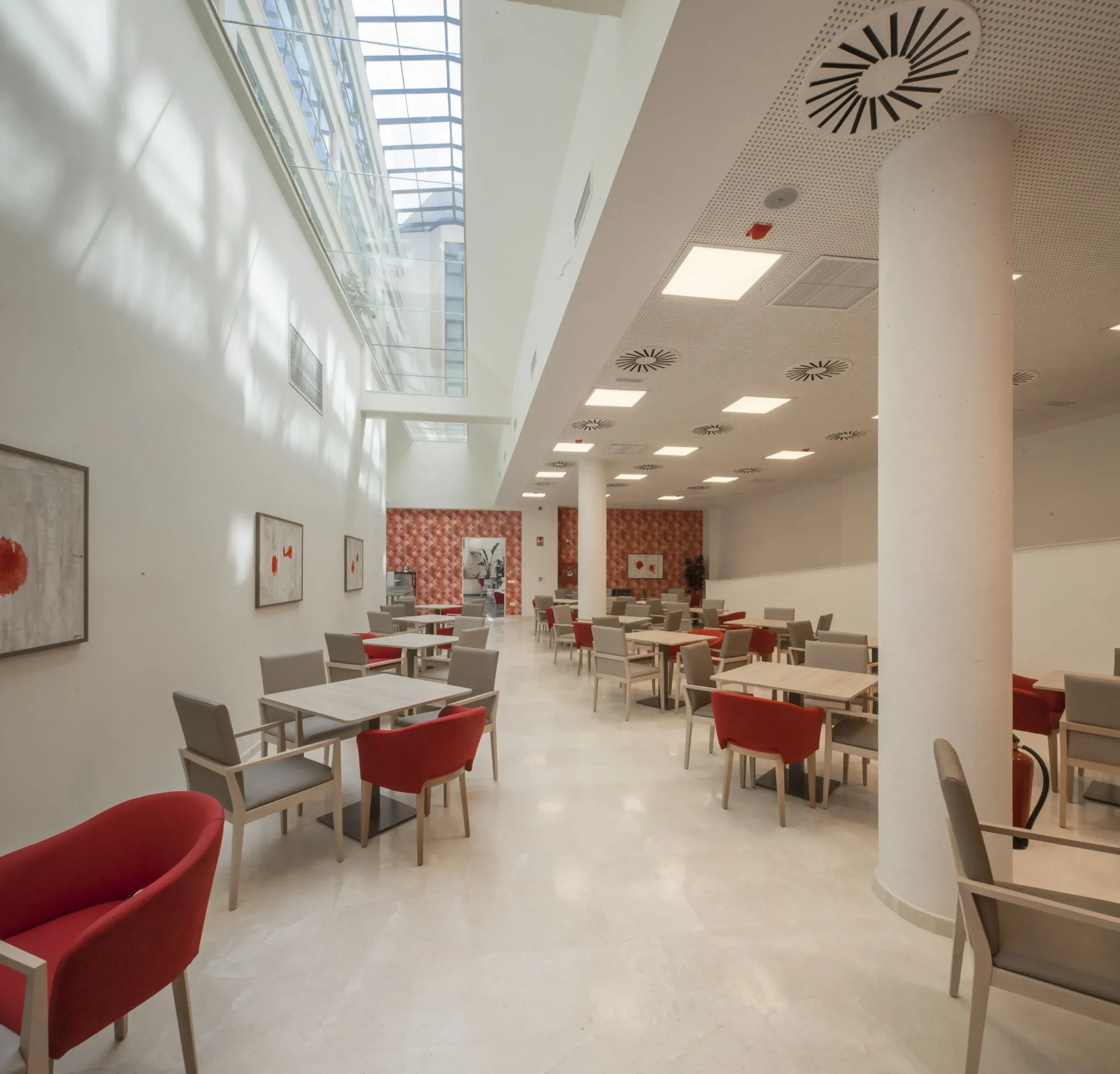 common areas and services: kitchen, living room and dining room, administration area and medical area, as well as a rehabilitation room and occupational therapy room, shared with the day center.
