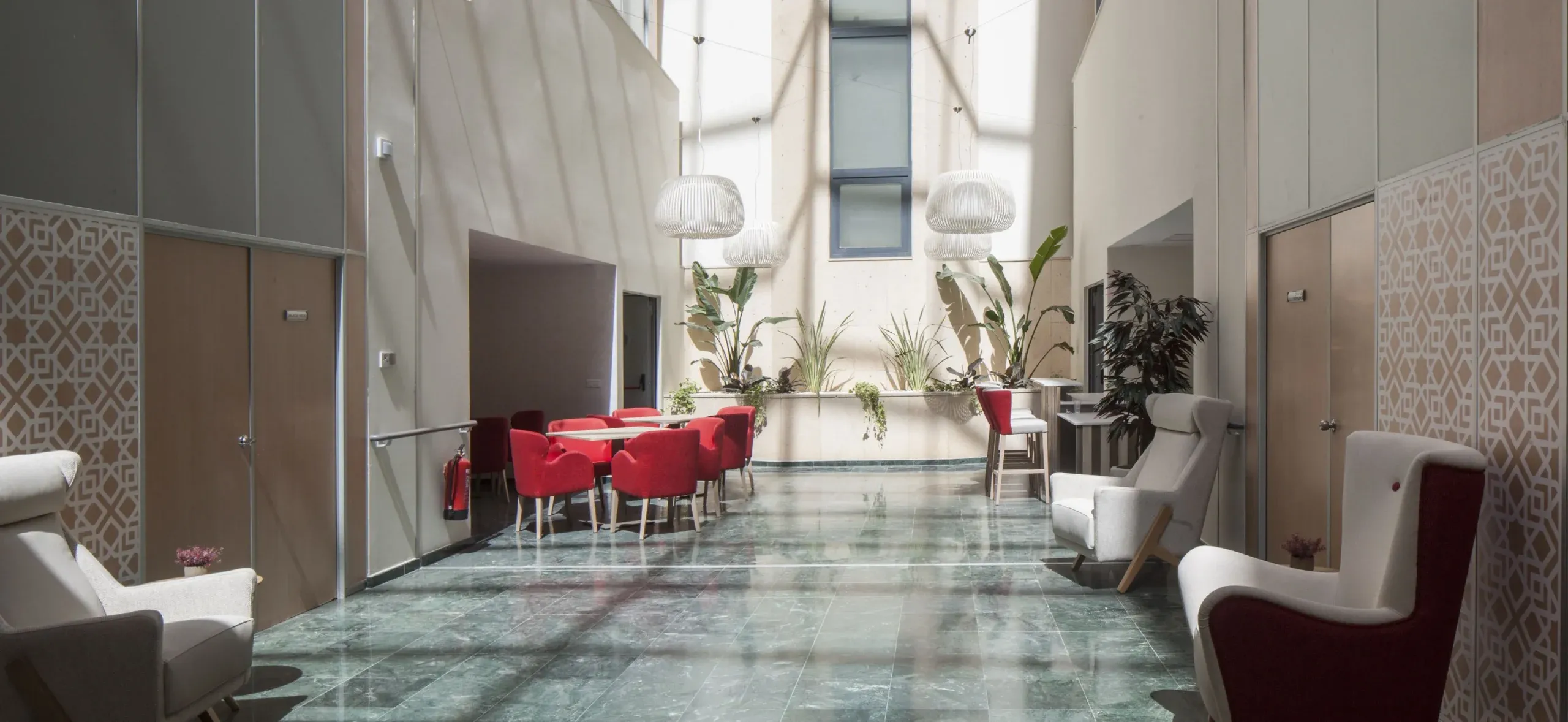 This center is located in a single module on the ground floor, with the following areas: living room, dining room, shared bathrooms, and specialized care area, the latter shared with the residential center.