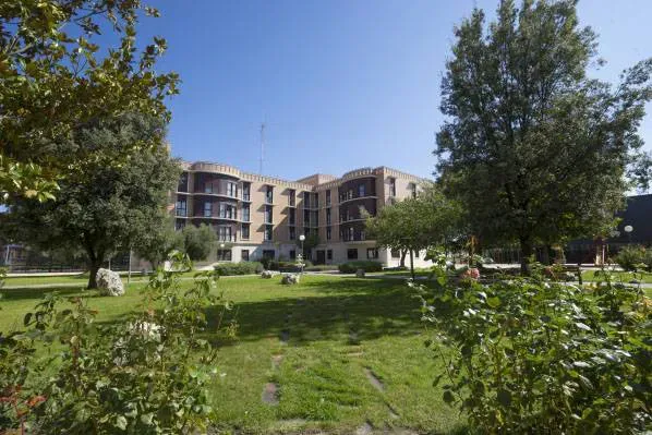 The plot, fairly flat and almost rectangular in shape, was located on the border between an industrial area. Therefore, it was decided that the center would be closed in on itself, creating a more or less enclosed complex, with the best orientation being within the plot’s garden, while always trying to avoid direct views of the industrial area. For this reason, it was decided that the two main buildings would adopt an “L” shape, helping to create an enclosed interior garden.