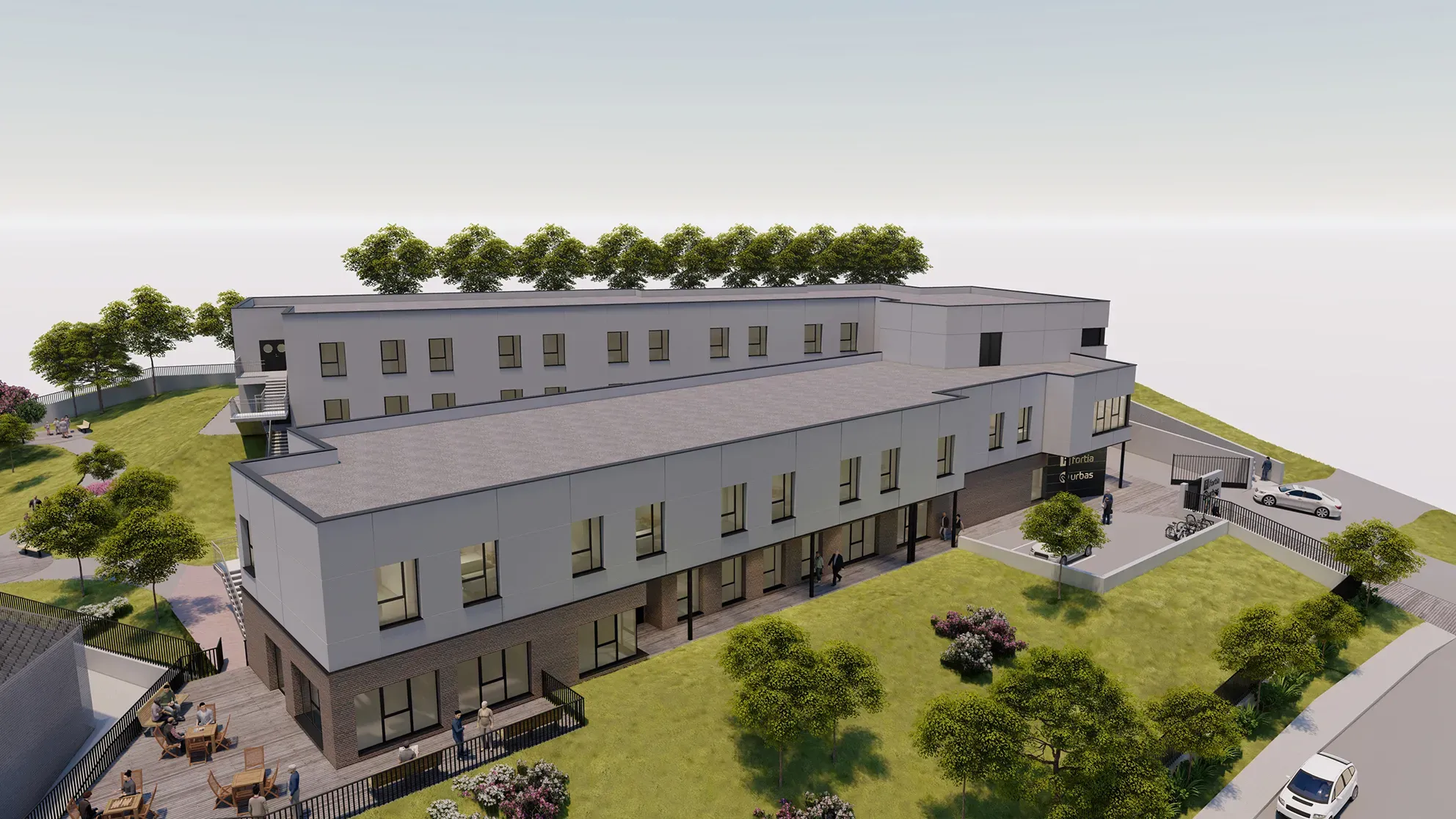 Level 0, the building’s entrance level, houses the Day Center, all of which open onto the various outdoor spaces surrounding the building. Level 1, with two residential units, is organized into three clearly differentiated zones. The central zone houses the main vertical communication spaces and the common spaces for residents, separated by each module, and the bedrooms occupy the two outer zones. Level 2 has only a single residential unit.