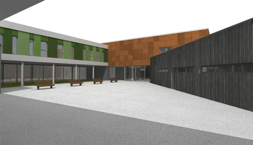 Se establece una primera fractura para diferenciar entre el Centro de Estancias Diurnas y el resto del programa Residencial Sociosanitario, aunque para facilitar el funcionamiento y optimizar los recursos se opta por unificar el acceso para ambos usos.